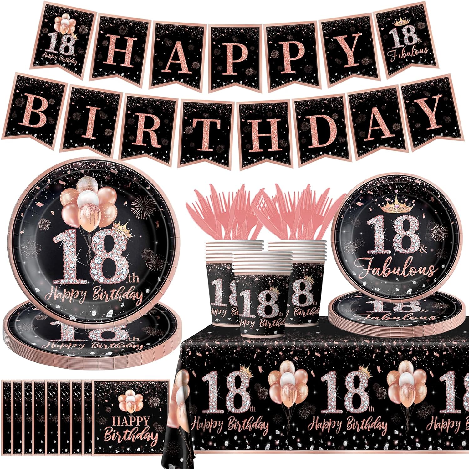 | Pattern | Pink diamond pattern with rose gold balloons and white diamonds |