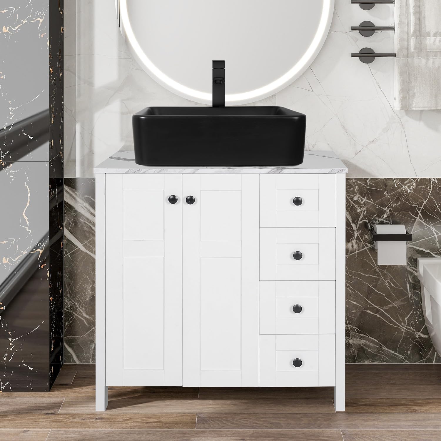 | Included Components | Faucet, Pop-up Drain, Sink, Vanity |
