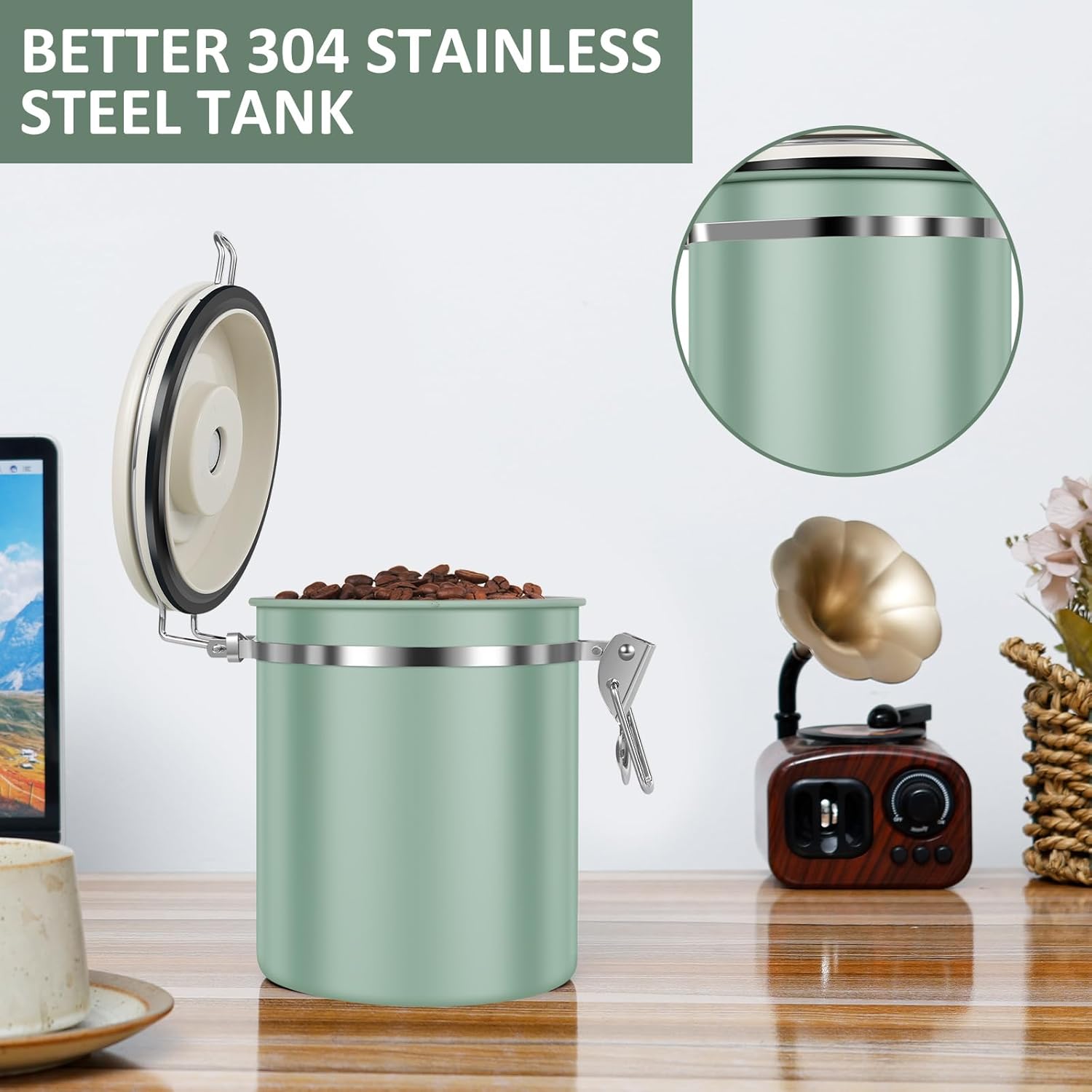 • [๐—ค๐˜‚๐—ฎ๐—น๐—ถ๐˜๐˜† ๐Ÿฏ๐Ÿฌ๐Ÿฐ ๐—ฆ๐˜๐—ฎ๐—ถ๐—ป๐—น๐—ฒ๐˜€๐˜€ ๐—ฆ๐˜๐—ฒ๐—ฒ๐—น] This coffee bean storage can is made of high quality 304 stainless steel, which is safe and odorless, sturdy and durable, light and heat insulation, and keeps the freshness of coffee beans better.