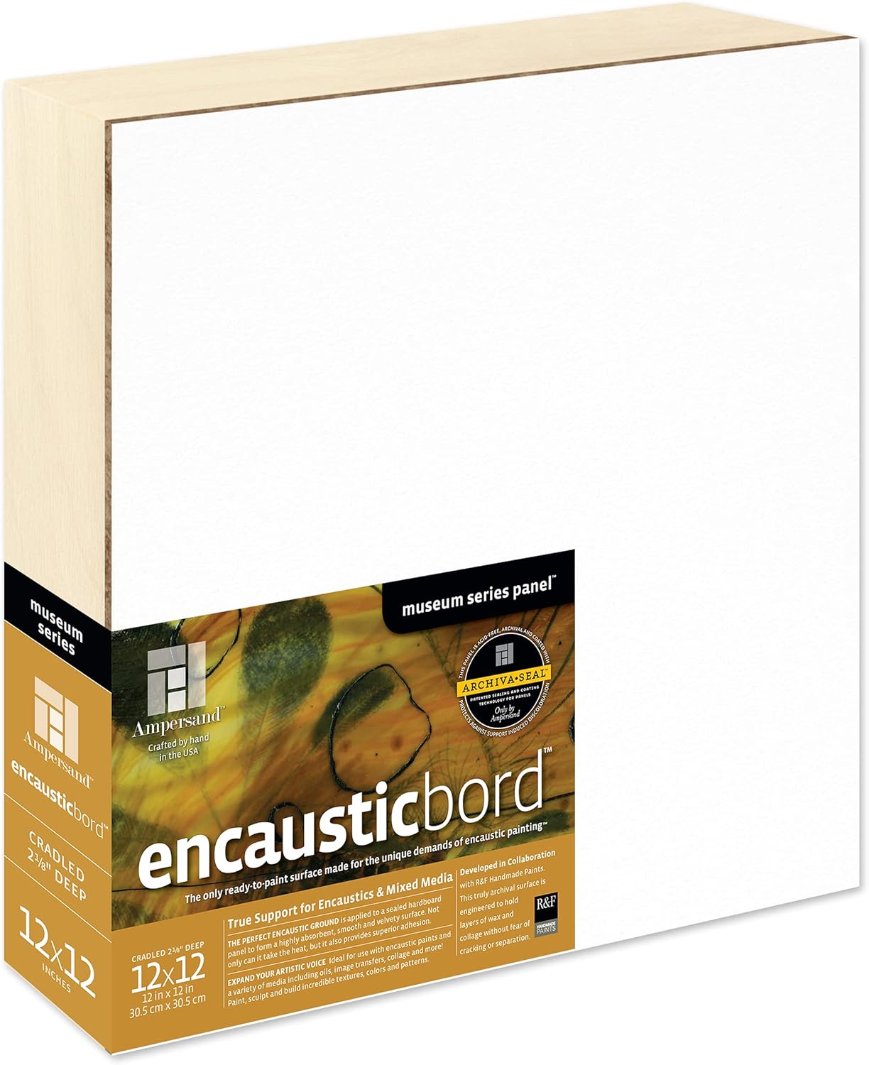 Ampersand Art Supply’s Museum Series Encausticbord is a professional, archival artist panel originally developed in collaboration with R&F Handmade Paints, drawing on their deep expertise in encaustic materials and wax painting techniques. Designed to meet the demanding requirements of encaustic painting—where repeated heating, fusing, scraping, and layered wax applications place extreme stress on the painting surface—Encausticbord provides a durable canvas and raw wood alternativefor encaustic painting. Encaustic techniques require a rigid, flat surface to withstand repeated heating and cooling without cracking. Flexible supports such as canvas are not well suited to these conditions, which is why professional encaustic practice favors stable panel supports. Encausticbord features a specially formulated, heat-resistant encaustic ground applied over a rigid Hardbord™ core, allowing molten wax to bond into the surface rather than sit on top. The proprietary white ground creates a bright, velvety surface that supports heavy layering without cracking, separation, or surface failure. The underlying Hardbord™ panel is sealed with Ampersand’s Archiva-Seal™ to provide long-term dimensional stability and help protect finished artwork from support-induced discoloration. Crafted using FSC-certified materials, Encausticbord reflects Ampersand’s commitment to responsible sourcing and museum-quality construction. Beyond encaustic, Encausticbord has become a favorite surface for artists working in drawing and mixed media. The smooth, tactile coating delivers controlled drag and seamless blending, making it especially well suited for charcoal, graphite, colored pencil, PanPastel, and pastel. The refined surface also performs beautifully with ink, graphic markers, image transfers, collage, cold wax, egg tempera, acrylic applications, and layered mixed media techniques—offering a rigid, professional alternative to drawing paper, sketch pads, and illustration boards. Encausticbord is available in both flat panels and cradled formats. Cradled panels feature Ampersand’s finely built 13-ply wood cradles, adding stability, clean edges, and a gallery-ready presentation that requires no additional mounting. Acid-free and archival, Encausticbord is designed for finished artwork intended for framing, exhibition, or sale. For more than 30 years, Ampersand Art Supply has been trusted by artists, educators, and institutions worldwide for premium artist panels built to exacting standards. Based in the USA and committed to artist-first innovation, Ampersand continues to develop professional surfaces that perform reliably in the studio and present beautifully on the wall.
