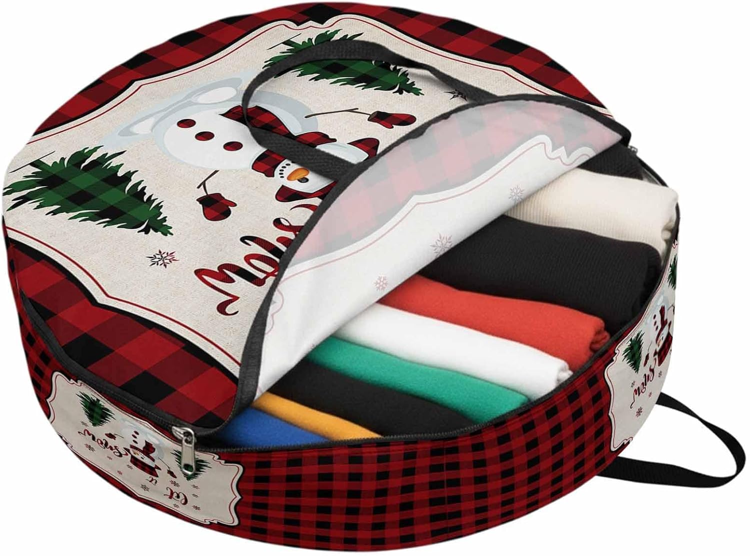 Reclaim Your Closet Space with the Round Storage Solution! Material: polyester Diameters: 24 inch, 30 inch, 36 inch Depth: 7 inches Package Includes: Round Storage Bag One Bag, Endless Possibilities: Whether you are swapping out your summer wardrobe, moving into a new dorm, or packing away holiday decorations, this bag has you covered. The circular design is uniquely suited for: Bedding: Comforters, quilts, sheet sets, and oversized pillows. Clothing: Winter coats, sweaters, and bulky ski gear. Home Decor: Holiday wreaths, garlands, and floral arrangements. Outdoor Gear: Camping blankets, sleeping bags, and beach towels. Dual Zippers: The high quality double zipper design allows the closet organizer to open wide from both sides, making it effortless to load and unload even the bulkiest comforters or wreaths. Reinforced Handles: Sturdy, reinforced handles are securely stitched to provide extra strength and a comfortable grip when carrying heavy loads or pulling the bag from under a bed. Clear Label Pocket: A transparent built-in label holder allows you to quickly identify the contents of each bag without ever having to unzip it, keeping your storage perfectly organized.