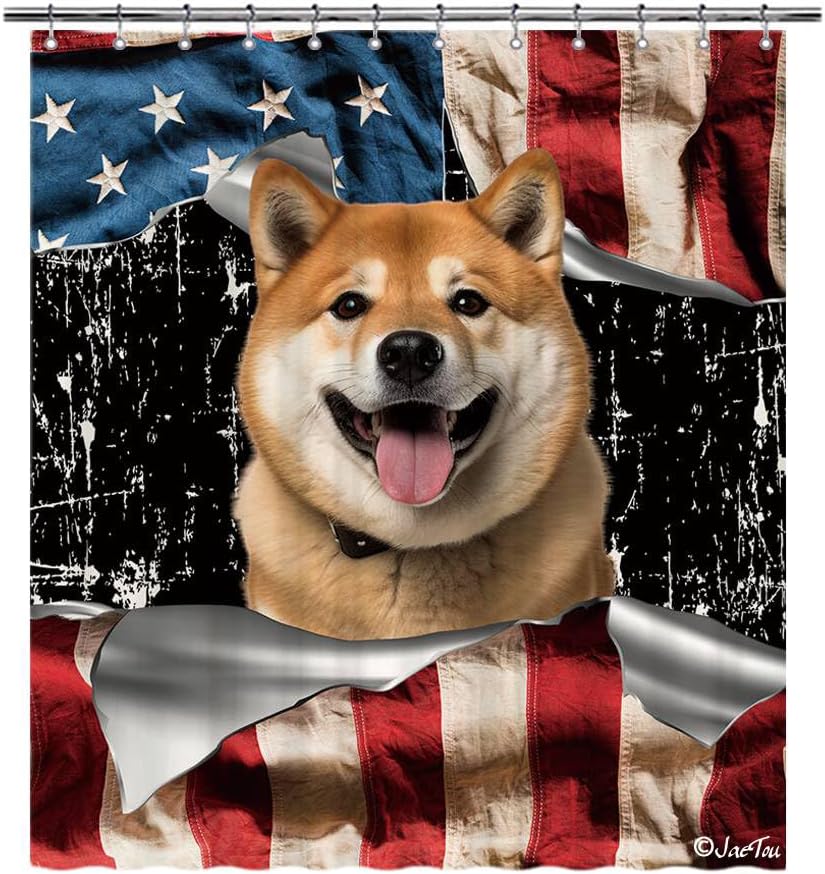 JaeTou Funny Dog with US Flag Decor Shower Curtains