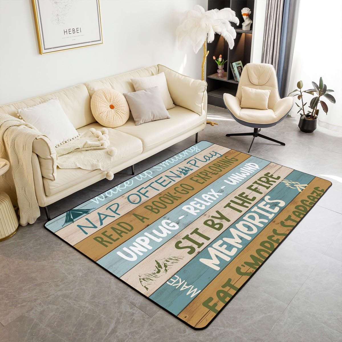 Tips: The carpet will arrive with temporary creases, you can repeat the process several times by rolling the carpet in the opposite direction of the creases and then spreading the carpet flat and pressing the edges of the roll with a heavy object to restore the carpet to its original state. We recommend using an iron to iron carpets at low temperatures more quickly Size: 2 sizes can be chosen of our rugs dimension: 3' x 5' x 0.39'' 100cm x 150cm x 1cm. 5' x 6'6'' x 0.39'' 150cm x 200cm x 1cm. Material: Made with 100% polypropylene. No chemicals used, No dye substance harming the health of you or your family. The rubber non slip design on the bottom of the area rug for bedroom is the safest protection. One piece is enough,you don't need to buy additional non slip carpet pads Machine washable: Soak in cold water for 10 minutes,then folded twice and put into the washing machine on gentle cycle, and then dry in the air.Do not use chlorine or bleach Features: With many different patterns to choose from, you will easily find rugs to coordinate with your decor. Our rug is widely used as the floor rug as well as a play mat, kitchen rug, bedroom rug, laundry mat, living room mat, office rug etc. Notes: Due to the light and screen setting difference, the item's color may be slightly different from the pictures Please allow slight dimension difference due to different manual measurement