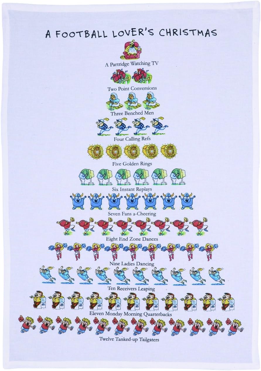 Each towel features a playful twist on the classic "Twelve Days of Christmas" song, tailored with iconic symbols and quirks.