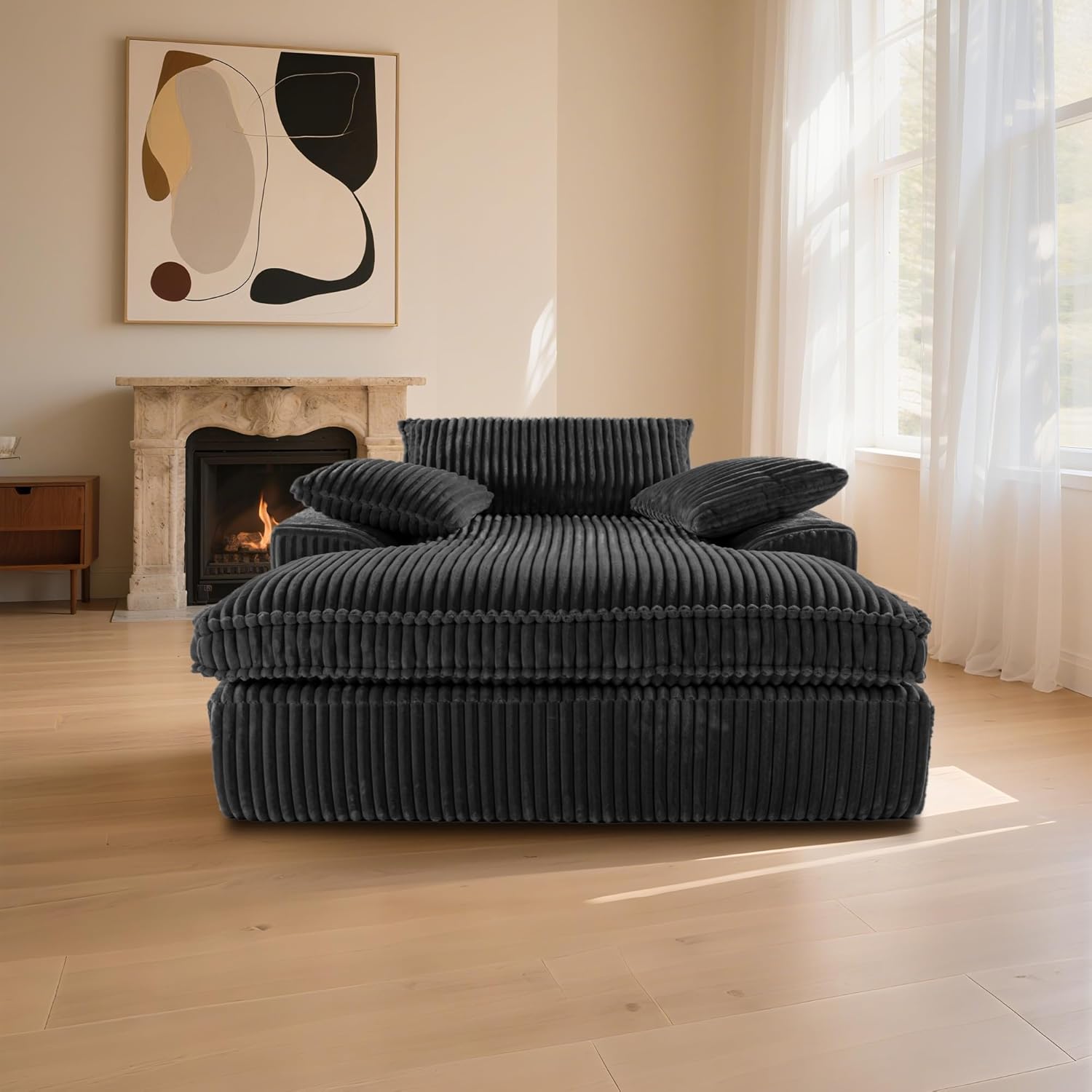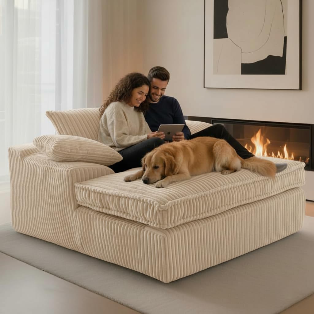 | Additional Features | Oversized, cloud-soft corduroy, all-foam structure, 3 throw pillows, no assembly. |