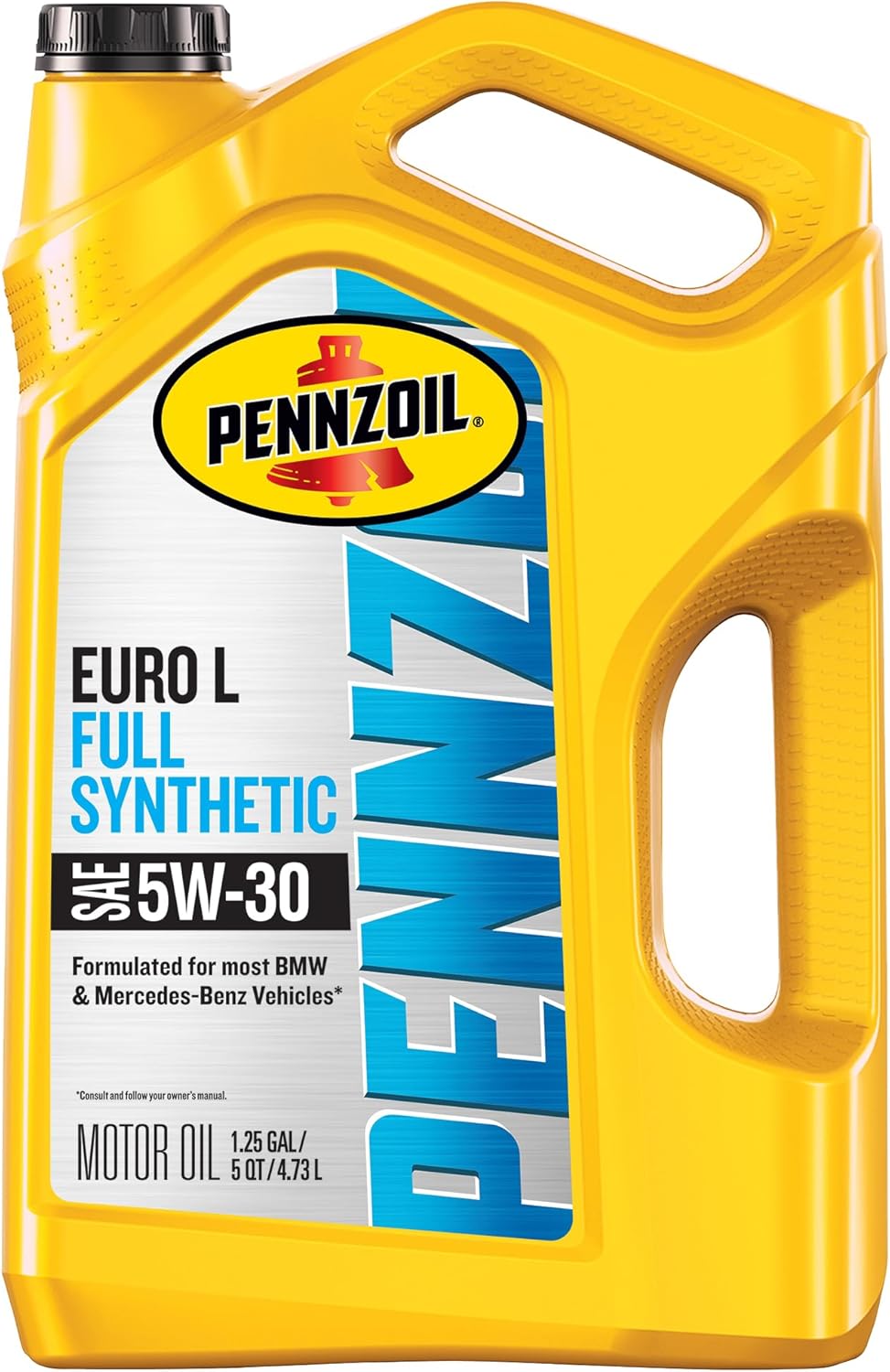 Pennzoil Platinum Euro Full Synthetic 5W-40 motor oil is designed to maximize engine protection for modern light-duty diesel and high-performance engines in European vehicles. Pennzoil Platinum Euro exceeds the most stringent car manufacturer requirements for cleanliness and protection based on Fiat, Mercedes-Benz, Porsche, Renault, and VW specifications. Made with natural gas, nothing keeps your engine closer to factory clean (based on Sequence VH and M-111 sludge test using SAE 0W-40) than Pennzoil Platinum Euro motor oil. It protects horsepower, provides excellent performance in extreme temperatures and provides better fuel economy (based on latest industry standard). It also helps extend engine life and protects for up to 15 years or 500,000 miles, whichever comes first, guaranteed*. (*Pennzoil Platinum Lubrication Limited Warranty: Up to 15 years or 500,000 miles, whichever comes first, guaranteed, if you exclusively use Pennzoil Platinum Full Synthetic motor oil, Pennzoil Platinum High Mileage Full Synthetic motor oil, and Pennzoil Platinum Euro Full Synthetic motor oil. Your engine must have fewer than 125,000 miles and have been manufactured in the past 72 months. To maintain your warranty, change your vehicle’s oil and oil filter at least as often as recommended by the vehicle manufacturer. Enrollment required. Keep your receipts. Other conditions apply. See pennzoil.com/warranty to enroll and for full details and terms.)