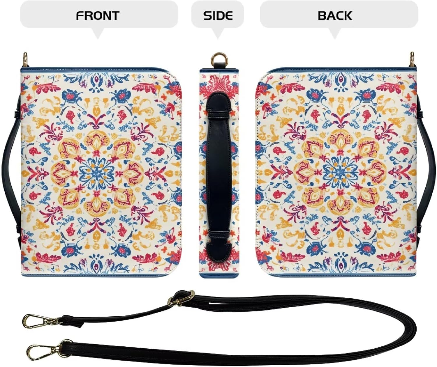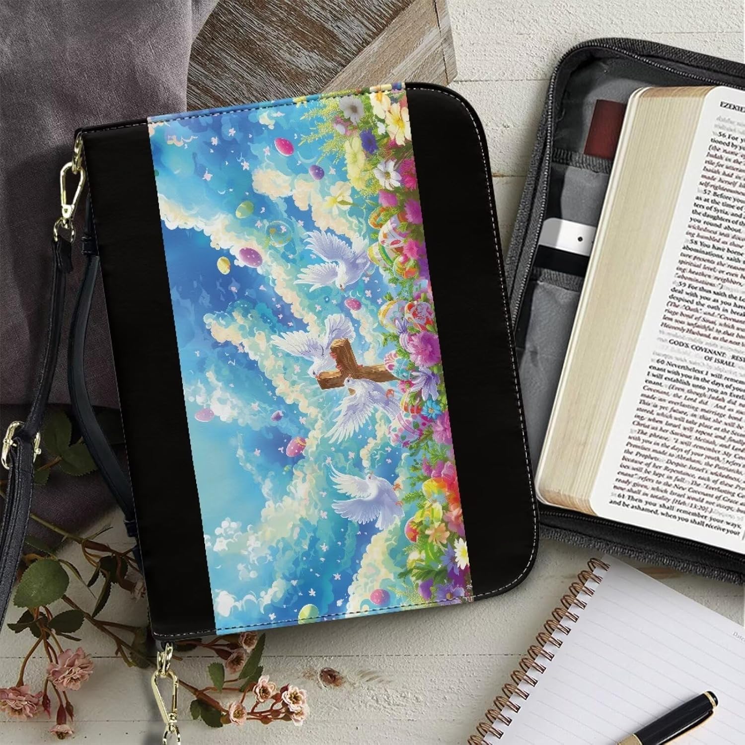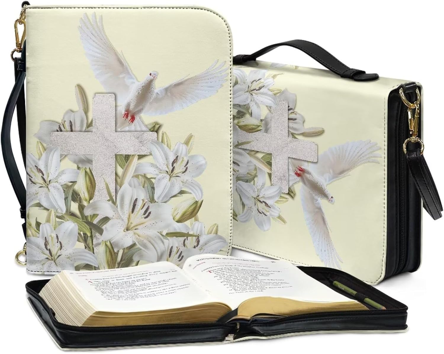 PU Leather Handheld Holy Bible Bag Introducing our elegant PU leather handheld Holy Bible bag, designed with both style and functionality in mind. This bag comes in four sizes - M, L, XL, and 2XL, offering a range of options to suit your needs and preferences. The interior of the bag is thoughtfully designed with ample space and organized compartments. It allows you to neatly store your essentials such as a mobile phone, books, pens, notebooks, and other paper documents. The smart compartmentalization ensures that your items are always within reach and well-organized. The unique feature of this bag is its ability to fully unfold when you're ready to immerse yourself in the scriptures. Without the need to remove your Holy Bible from the bag, you can simply unfold it and start reading. This design not only saves you time but also keeps your belongings secure and in place. Crafted from durablity PU leather, this bag is both stylish and long-lasting. It's a perfect accessory for any occasion, whether you're attending a church service, a study group, or simply spending some quiet time reading at home. Whether you're a frequent traveler, a student, or a devoted reader, this PU leather handheld Holy Bible bag is sure to become your faithful companion. Order yours today and experience the convenience and elegance of this unique design.