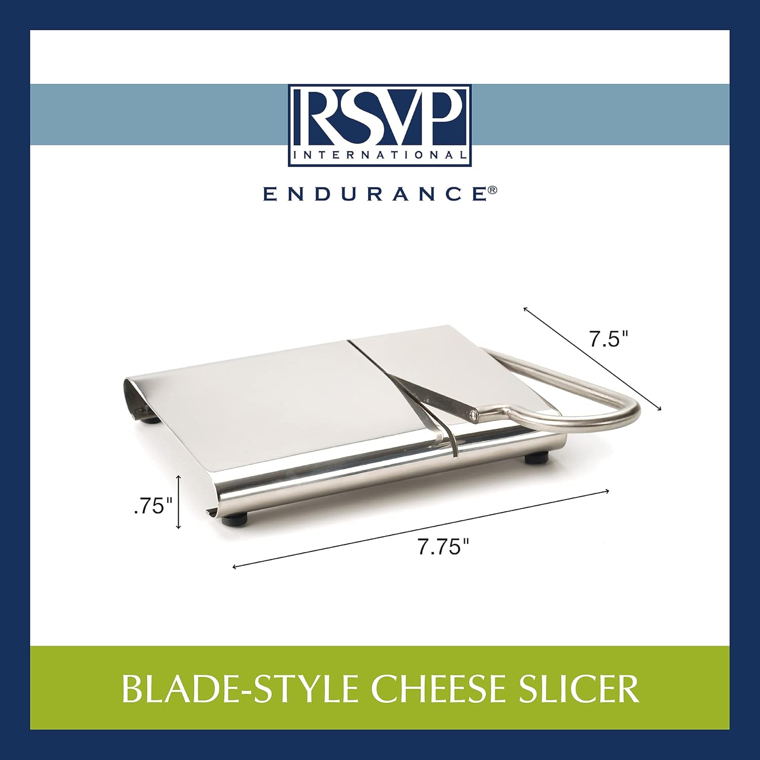 RSVP strives to offer quality kitchen products and cooking tools. Our Endurance Modern Cheese Slicer is a perfect example. This sleek satin finished stainless steel cheese slicer has a solid, sharp 4-inch stainless steel blade. The base measures 7-inches wide and 5-1/4-inches deep. Features non-skid grips to prevent slipping. The perfect addition to the well styled modern kitchen. Dishwasher safe. When all the right people, and ingredients, kitchen tools, and food come together, we call this The Art of Gathering.