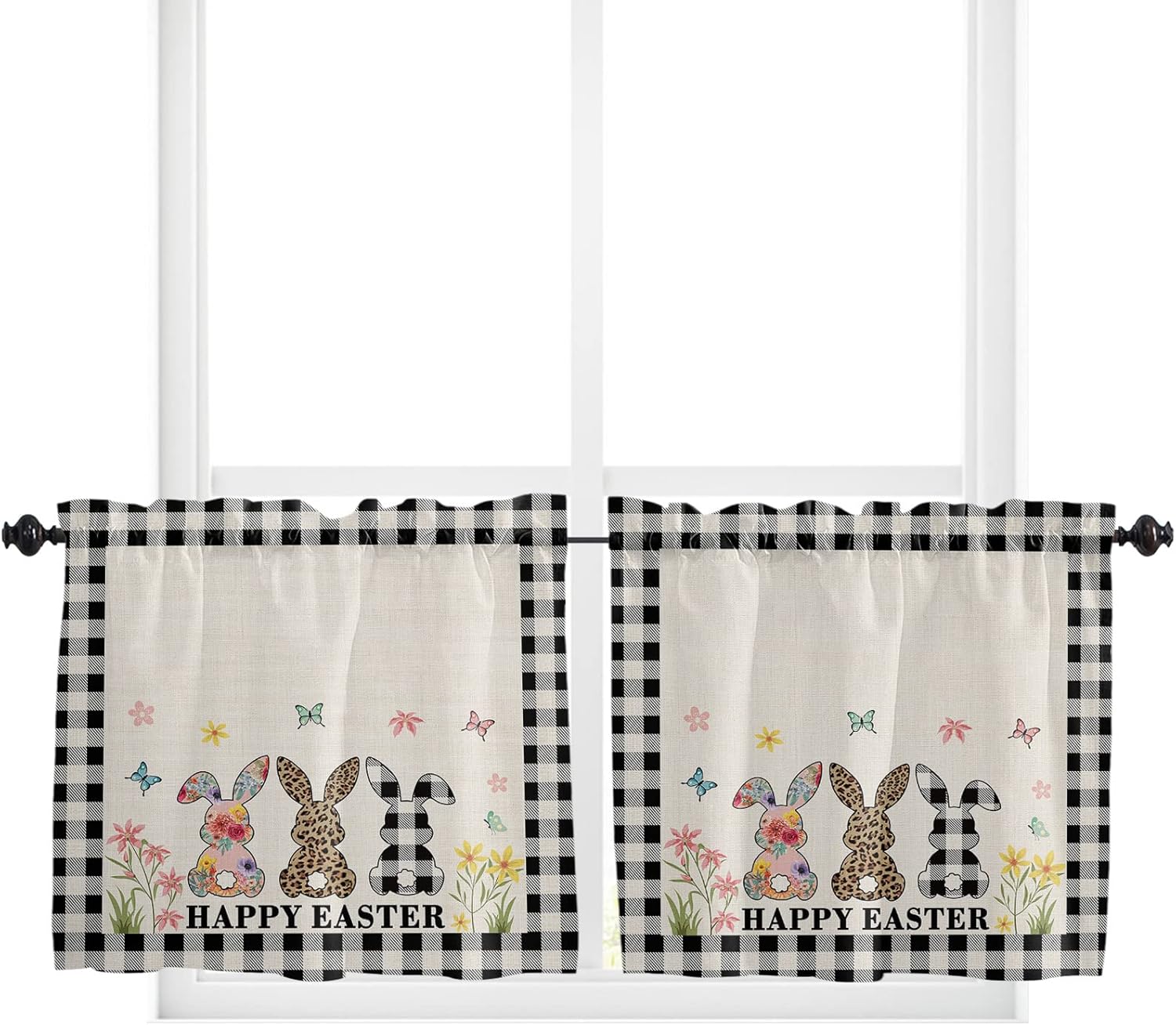 Rod Pocket Tier Curtains 2 Pieces Set As an ornamental drapery, you can put it on top of the window for more style. This adds a little extra style to your windows and can even block some sunlight. The Half Window Curtains Tiers can be hung alone and also can mix with same style curtains. Good Performance These Kitchen Curtains can block most unwanted sunlight, and protect your privacy. Small Kitchen Curtain Tiers for windows are not too heavy but heavy enough to fall nicely. Rod Pocket slides easily onto your curtain rod for quick installation. Widely Use A variety of styles kitchen curtains are available, it is easy to coordinate with your home decoration, like Cafe, kitchen, bathroom, bedroom, closet, shelf or any places you want to put on. It's also perfect gifts for family, friends and other people for housewarming, Christmas, Halloween, Easter Day, Valentine's Day. Washing Instructions Machine washable in gentle cycle and cold water,do not bleach.Warm iron and tumble dry at low temperatures.