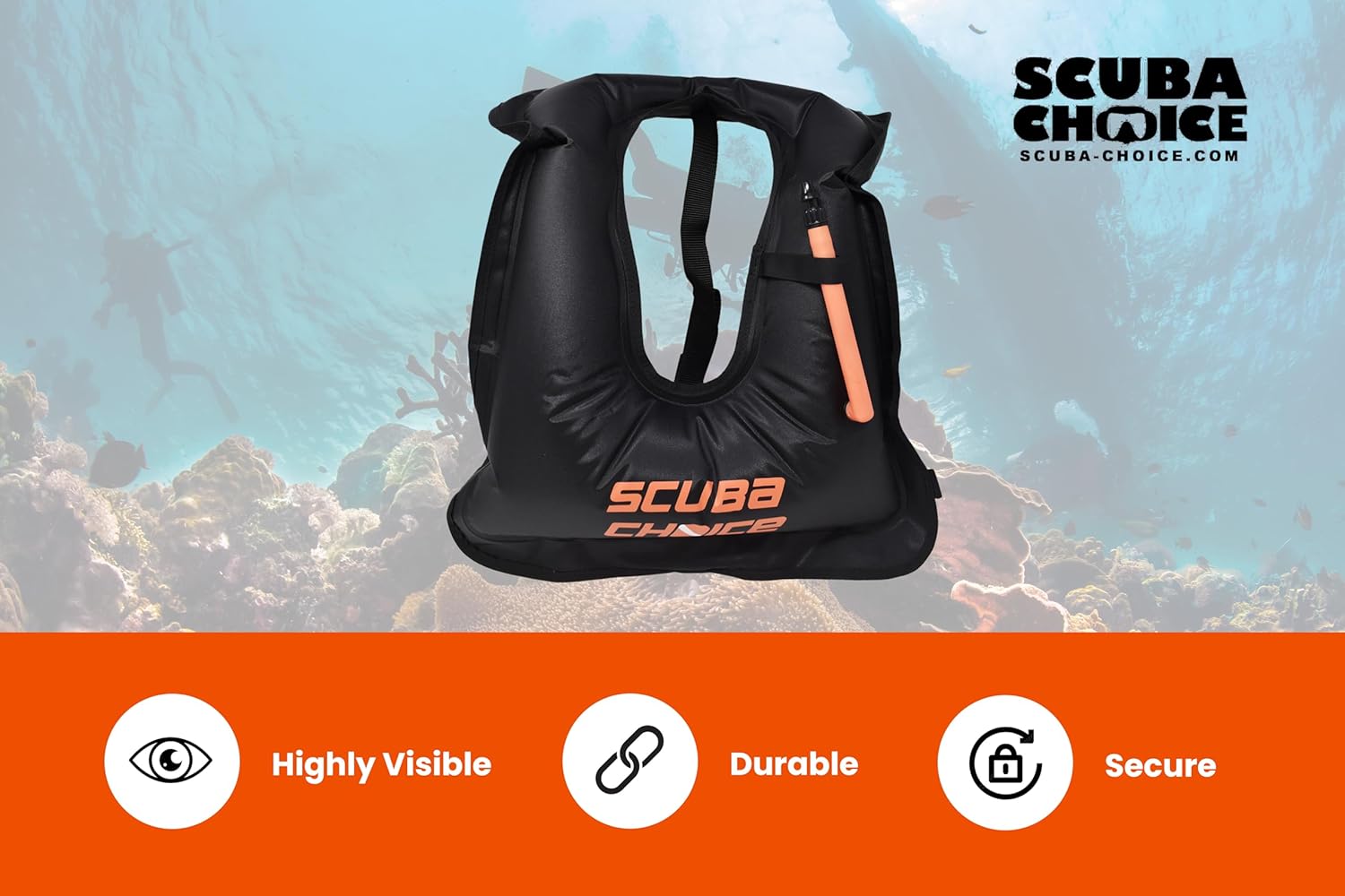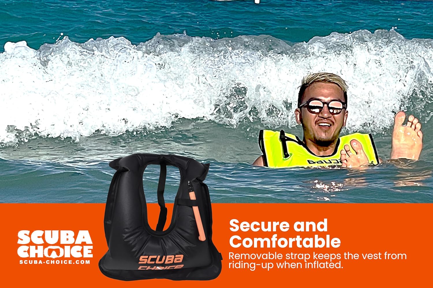 Enjoy relaxed surface time with the Scuba Choice Adult Snorkel Vest, designed to provide comfortable flotation support while snorkeling, swimming, or enjoying calm water activities. The inflatable design allows you to adjust buoyancy easily using the oral inflator, giving you better control in the water without restricting movement. A built-in name box adds a practical personal touch for identification during group outings or travel. Made with durability and comfort in mind, this adult snorkel vest features a secure yet lightweight fit that stays comfortable during extended wear. The removable strap allows for easy adjustment or customization based on your preference, while the compact design makes it simple to pack and carry for beach trips, cruises, or resort snorkeling. Bright visibility helps you stay noticeable on the surface while enjoying your time in the water. Ideal for recreational snorkelers looking for added flotation assistance, this vest supports confidence and ease during surface swimming and snorkeling sessions. It is intended for buoyancy support only and not as a life jacket, making it a practical choice for controlled water environments where comfort, adjustability, and convenience matter most.