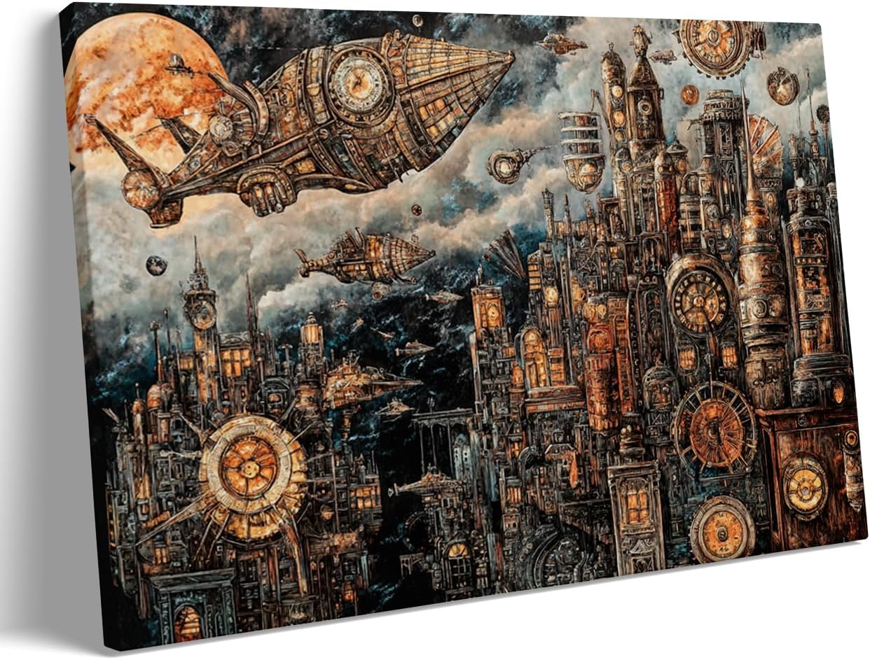 Bring your walls to life with the imaginative fusion of mechanical detail, fantasy scenery, and steampunk nostalgia in the. Whether it's a humanoid robot, a geared fish, or a floating steampunk city, each piece in this series explores the intersection of technology and artistry, sparking curiosity and inspiration in any space.